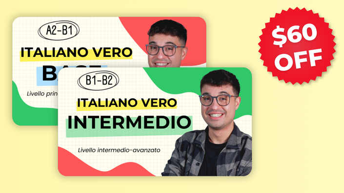 Ottieni i nostri corsi Italiano Vero Base (A2-B1) e Italiano Vero Intermedio (B1-B2).