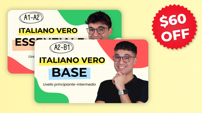 Ottieni i nostri corsi Italiano Vero Essenziale (A1-A2) e Italiano Vero Base (A2-B1).